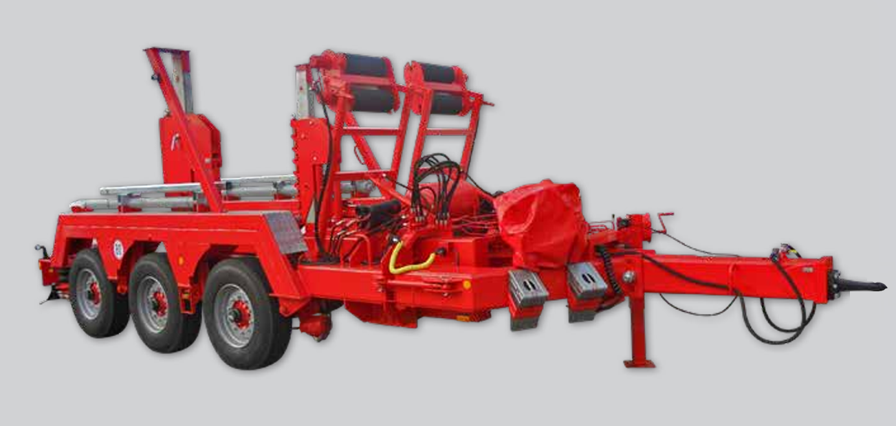 The trailer is delivered in 3 parts to fit the shipping in a container, and for a fast and easy assembly. U-shaped construction, tandem axle, with parking brake and mudguards, DIN coupling, coupling height 900 mm (± 100 mm), hand operated hydraulic lifting pump, reinforced jockey wheel, without lighting system but with reflectors, for site purposes without TÜV approval, 20 km/h, red colour RAL 3020. Complete with standard equipment.