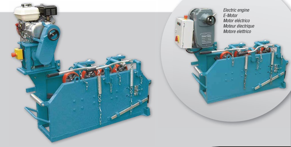 Kabelraupe CABLE DOG – mit einer Schubkraft von 800 daN. Diese Geräte finden vortref fliche Anwendung bei der Verlegung von sehr langen und sehr schweren Kabeln bis zu einem Durchmesser von 120 mm. Sie eignen sich zur Unterstützung einer Kabelzugwinde, der sie im Falle von Problem strecken eine zusätzliche Schub- oder Zugkraft liefern, damit das Kabel nicht mit