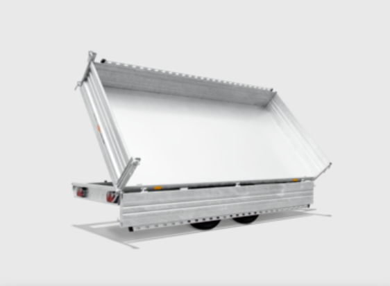 Die Modelle überzeugen durch eine besonders massive und robuste Konstruktion, einen Kippwinkel von ca. 45° sowie eine hochwertige Ausstattung. Die 400 mm Stahlbordwände sorgen für maximale Stabilität im täglichen Einsatz. Dank der serienmäßigen E-Hydraulik und stabilen Oberbrücke eignen sich die Kipper ideal für den Transport von Schüttgut, Baustoffen oder Maschinen.