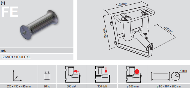 Kabel-Eckrolle, geeignet zum Verlegen von Kabeln bis max. ø 260 mm in Kurven. Bestehend aus: