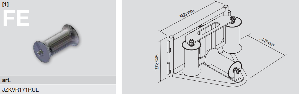 • drei Rollen aus verzinktem Stahl, gelagert mittels doppelt geschützter Kugellager