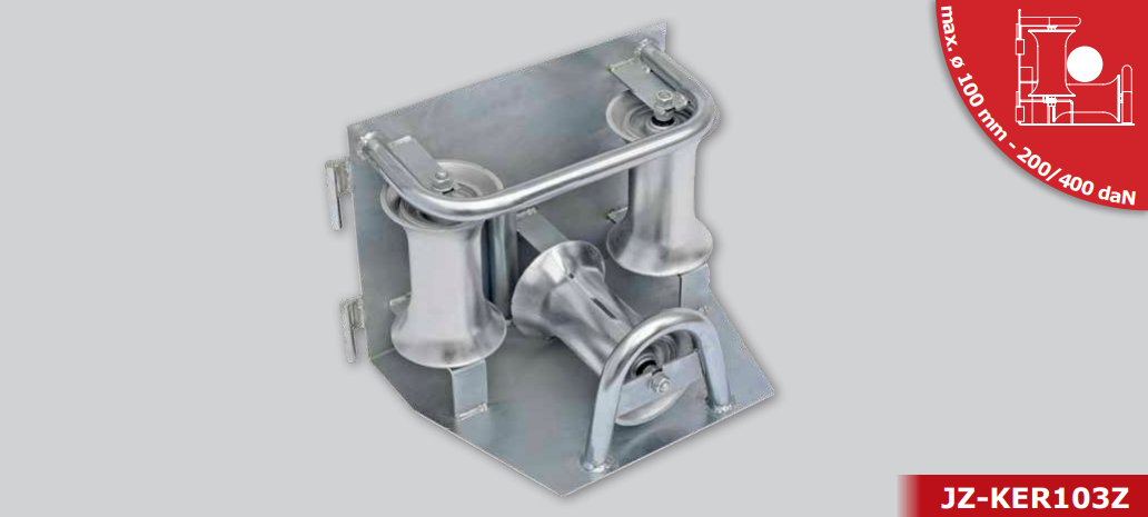 Kabelverlege-Eckrolle, geeignet zum Verlegen in Kurven von Kabeln bis max. ø 100 mm. Bestehend aus: