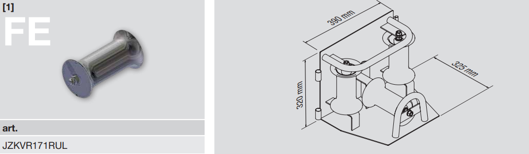 • drei Rollen aus verzinktem Stahl, gelagert mittels doppelt geschützter Kugellager