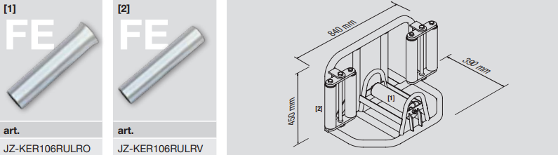 •zwei vertikalen Rollenpaare und einer horizontalen Rolle aus verzinktem Stahl, gelagert mittels selbstschmierende Messingbuchsen