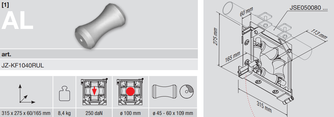 • 4 Rollen aus Aluminiumlegierung, gelagert mittels doppelt geschützter Kugellager