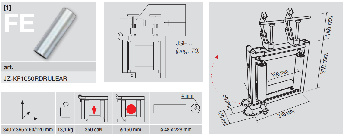 Kabelführungsgerät mit Schutzrollen zum verlegen von Kabeln bis max. ø 150 mm in Kabelkanälen Bestehend aus: