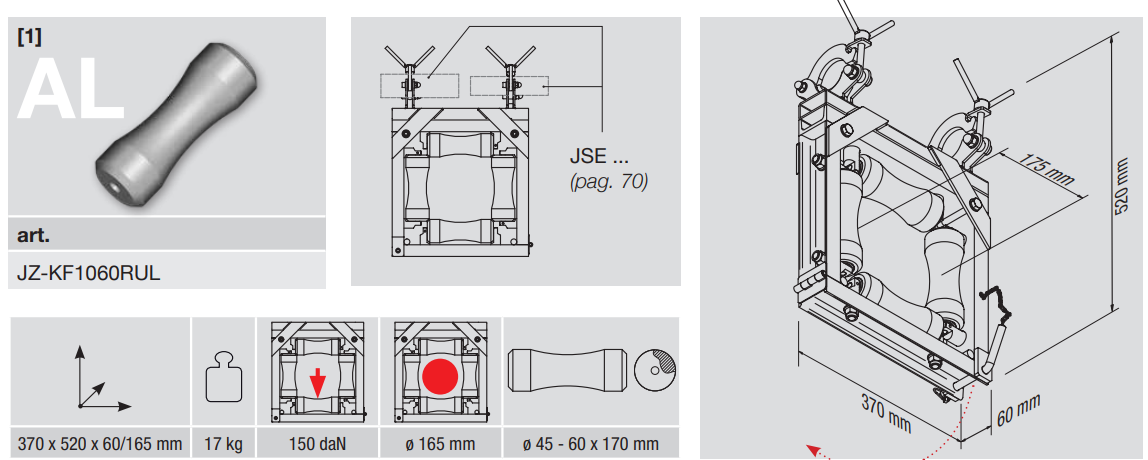 Kabelführungsgerät mit Schutzrollen zum verlegen von Kabeln bis max. ø 165 mm in Kabelkanälen Bestehend aus: