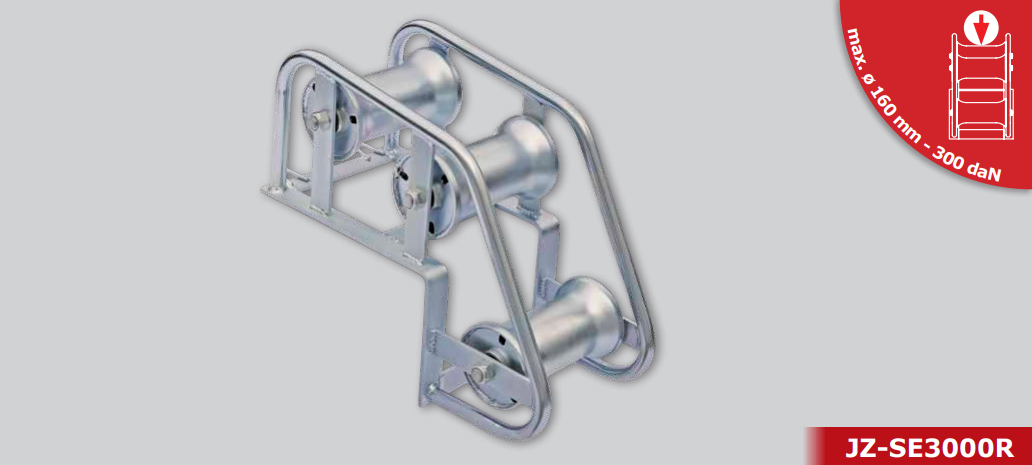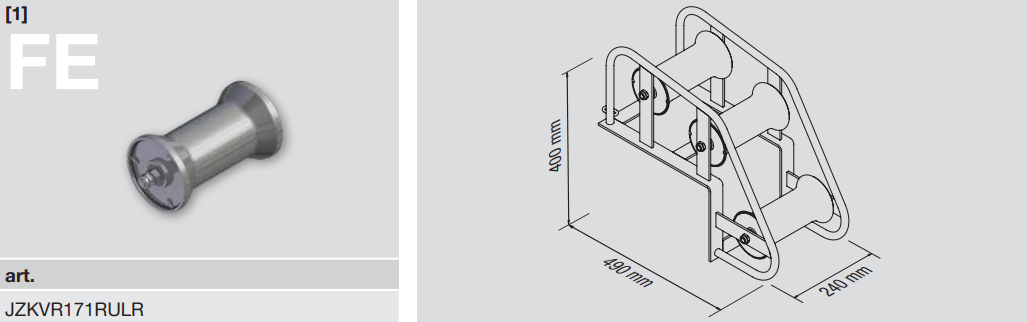 • drei Rollen aus verzinktem Stahl, gelagert mittels doppelt geschützter Kugellager