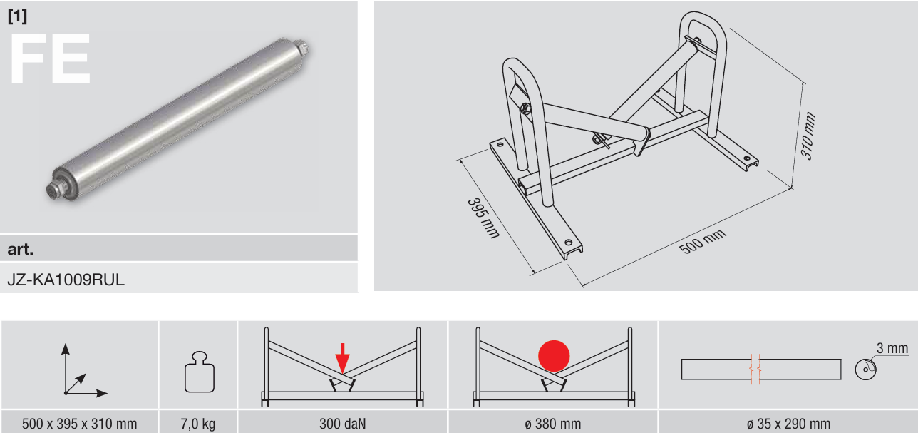 • zwei Rollen aus verzinktem Stahl, gelagert mittels doppelt geschützter Kugellager