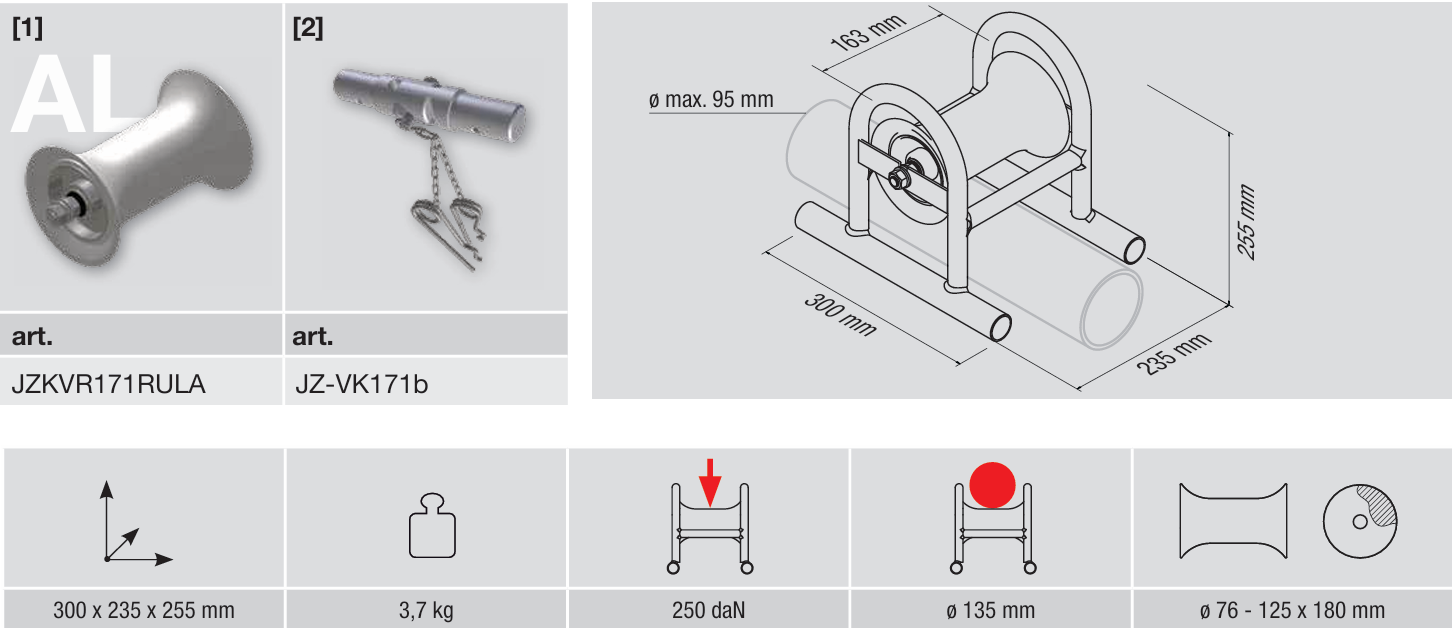 Kabelverlegerolle zur geradlinigen Verlegung von Kabeln bis zu einem ø von 135 mm Bestehend aus: