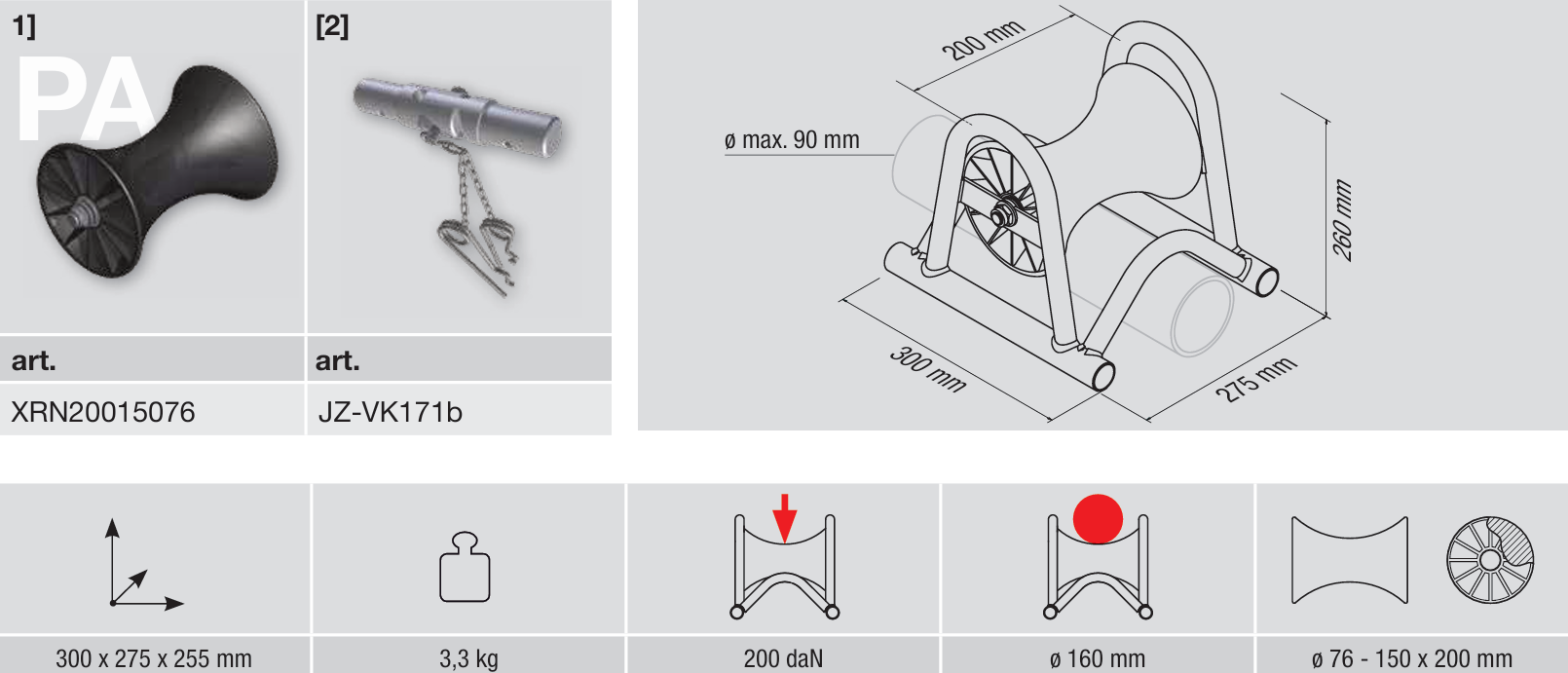 Kabelverlegerolle zur geradlinigen Verlegung von Kabeln bis zu einem ø von 160 mm