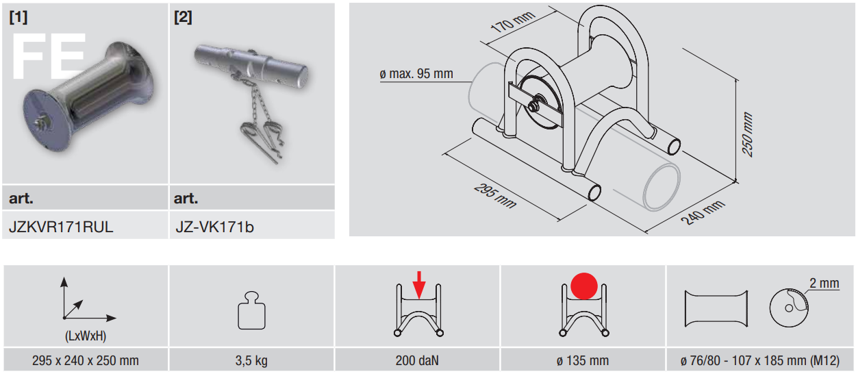 Kabelverlegerolle zur geradlinigen Verlegung von Kabeln bis zu einem ø von 135 mm Bestehend aus: