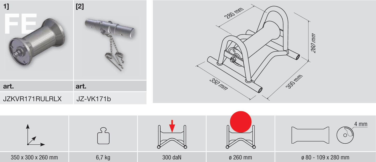Kabelverlegerolle zur geradlinigen Verlegung von Kabeln bis zu einem ø von 260 mm Bestehend aus: