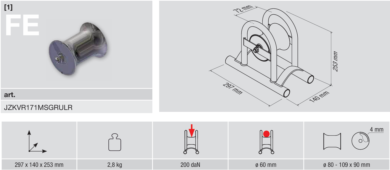 Kabelverlegerolle schmal zur geradlinigen Verlegung von Kabeln bis zu einem ø von 60 mm, bestehend aus:
