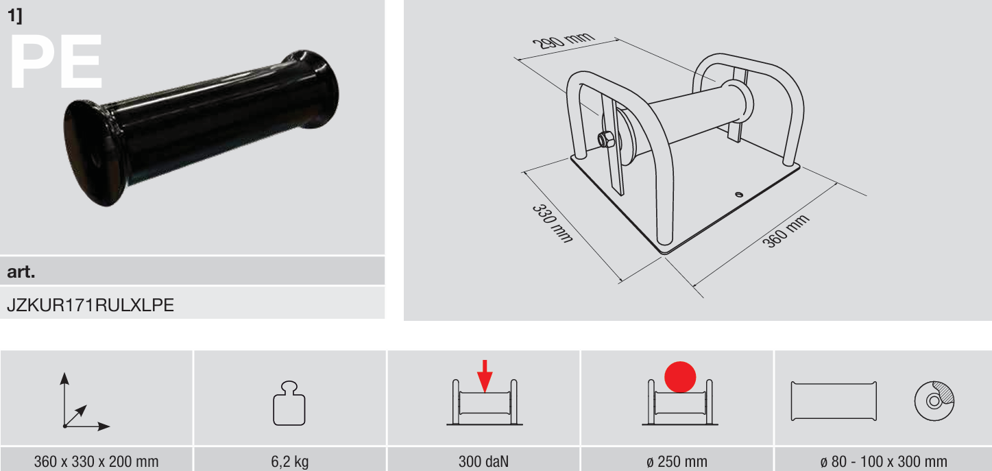 Kabelverlegerolle zur geradlinigen Verlegung von Kabeln bis zu einem ø von 250 mm