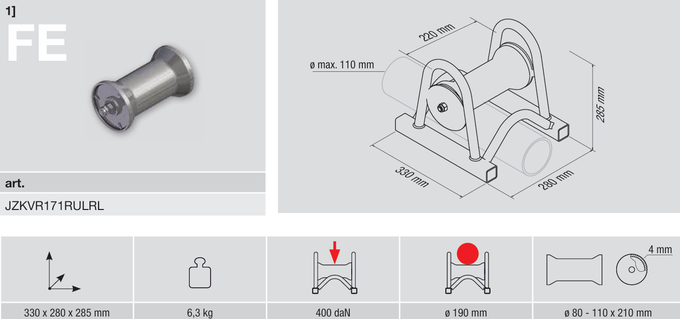Kabelverlegerolle zur geradlinigen Verlegung von Kabeln bis zu einem ø von 190 mm