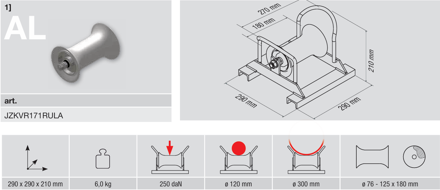 Kabelverlegerolle zur geradlinigen Verlegung von Kabeln bis zu einem ø von 120 mm und Leerrohren bis zu einem ø von 300mm Bestehend aus: