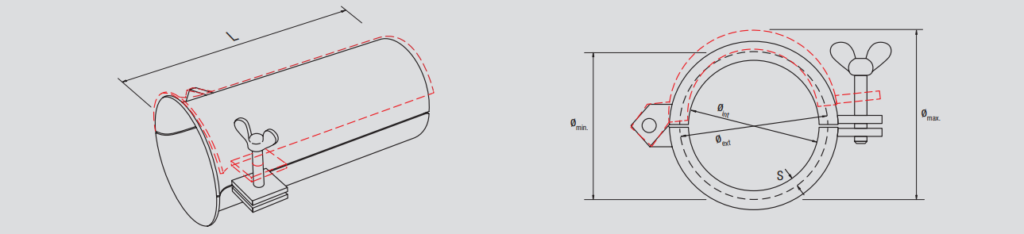 Kabelschutzrohr, verzinkt, gerade, mit Scharnier und Spannvorrichtung.
