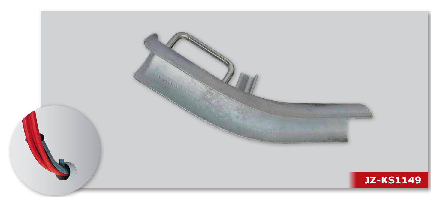 Kabelschutzbogen mit Haltesegment und Griff, verzinkt, für Kabeldurchmesser von 35 – 100 mm.