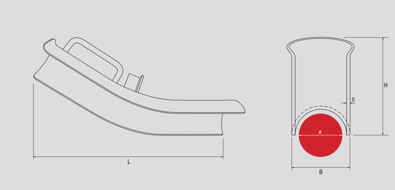 Kabelschutzbogen mit Haltesegment und Griff, verzinkt, für Kabeldurchmesser von 35 – 100 mm.