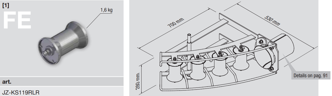 • vier Rollen aus verzinktem Stahl, gelagert mittels doppelt geschützter Kugellager