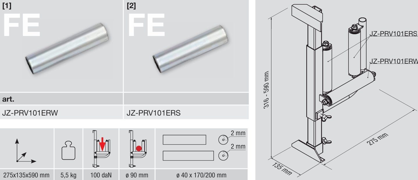 • 3 verzinkte Stahlrollen, gelagert mittels doppelt geschützter Kugellager.