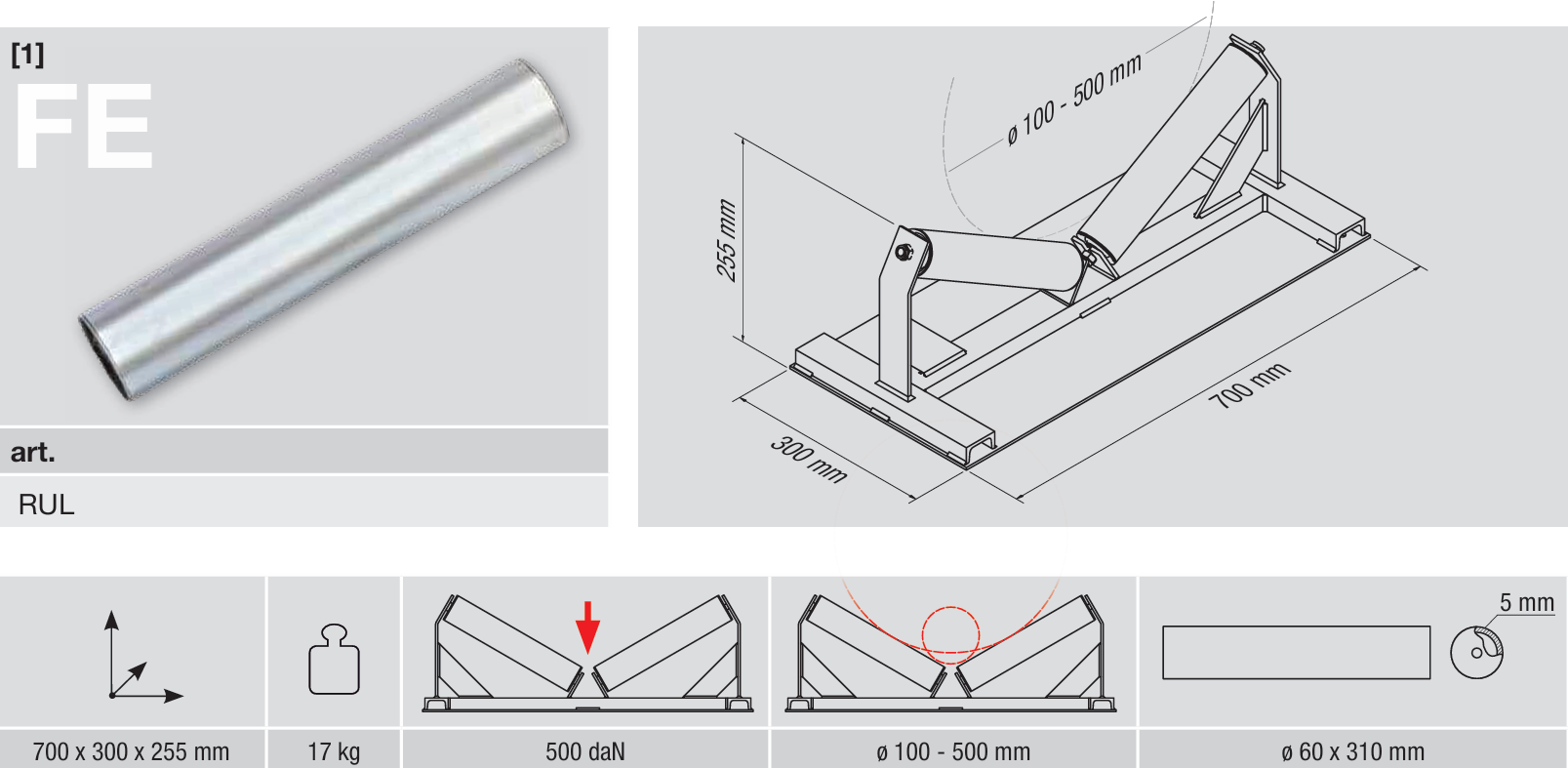 • zwei Rollen aus verzinktem Stahl, gelagert mittels doppelt geschützter Kugellager