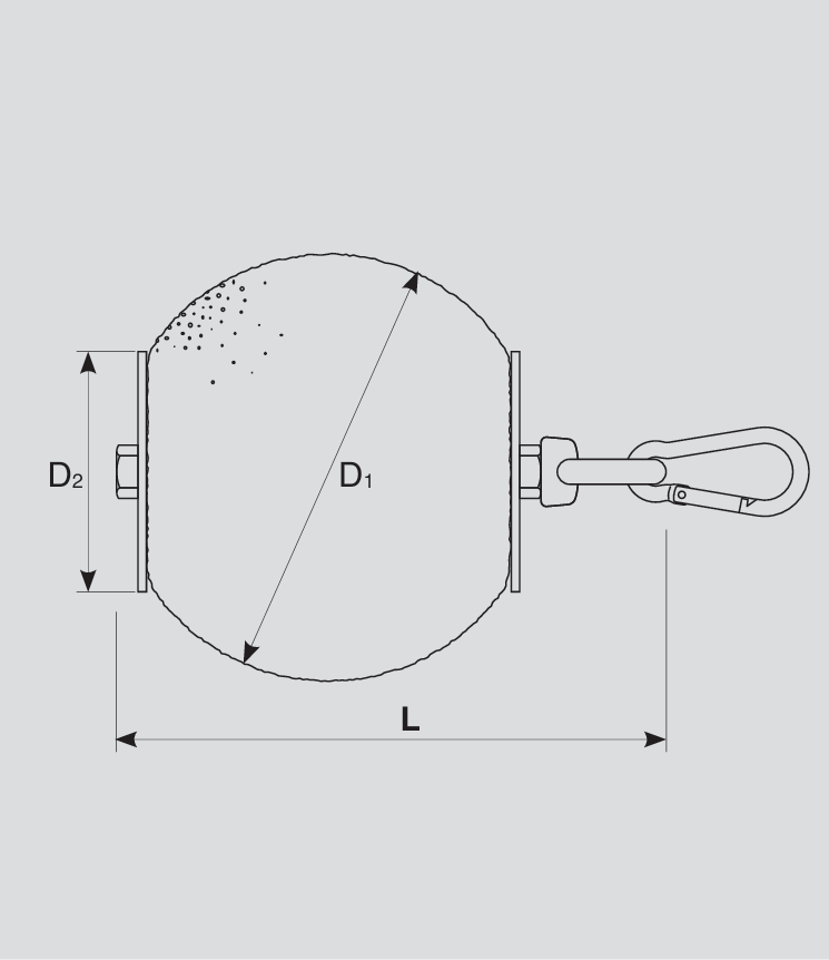 Schwammdurchblasballkolben zum einblasen von Vor- und Hilfsseilen sowie gleichzeitiges schmieren in Kunststoff bzw. Stahlrohren. Passen sich den verschiedenen Rohrformen an. Mit einem Luftdruck von 0,5- 2,0 bar können beachtliche Verlegelängen erreicht werden, Raumgewicht 250 g/dm3. Komplett mit Haltebolzen und Fixieröse aus Stahl.