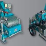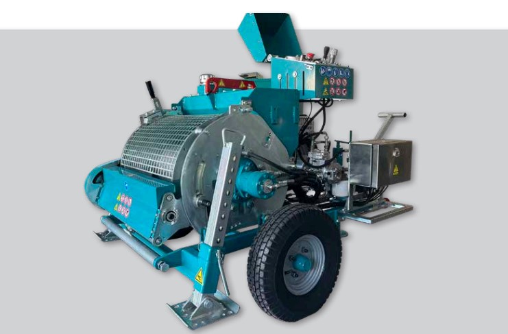 Hydraulische Trommelwinde, die sich sowohl für die unterirdische Verlegung von Kabeln als auch für den Einsatz als Montagewinde eignet. Antrieb hydraulisch durch einen Benzin- oder Elektromotor. Die maximale Zugkraft wirkt direkt auf der Seilspeichertrommel. Montiert auf einem robustem Grundrahmengestell mit Fahrachse und ausgestattet mit einer hydraulisch wirkenden Messuhr mit Abschaltautomatik. Die Trommelwinde ist mit einer Bremse mit negativer Bremswirkung ausgerüstet, die beim Loslassen des Bedienhebels eingreift.