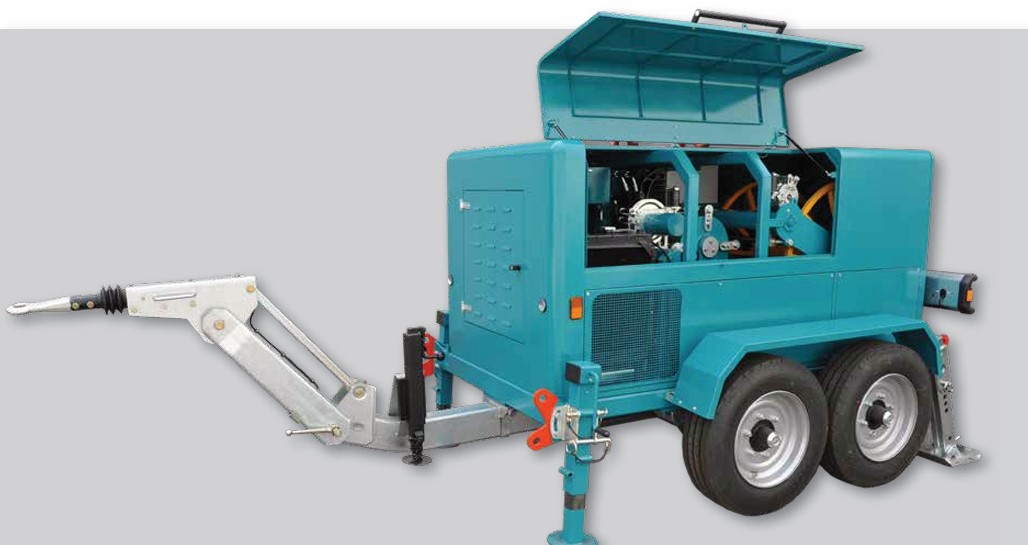 Hydraulische Rohrsanierungswinde, hydraulischer Antrieb durch einen Diesel Motor. Die maximale Zug kraft wird durch zwei Mehr fachrillenspillköpfe erreicht. Montiert auf einem Fahrgestell, ausgestattet mit einem elektronischem Messgerät mit Anzeige der Zugkraft, Geschwindigkeit, verlegten Länge sowie Betriebsstundenzähler. Vorspann Automatik mit konstanter