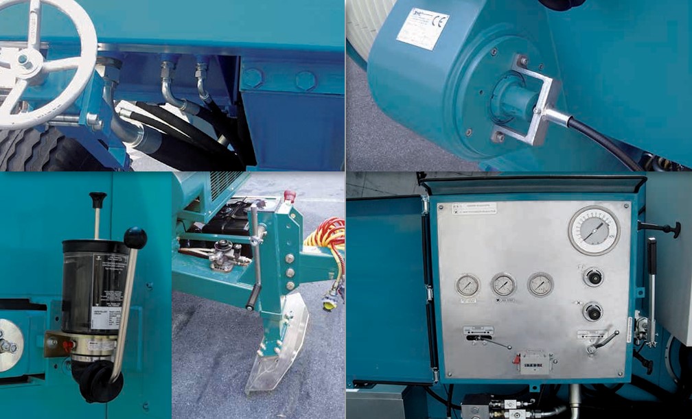Hydraulische Bremsmaschine geeignet für die Freileitungsverlegung von Stahl- und Leiterseilen sowie OPGW. Die Bremskraft wird durch zwei große, aus hochfestem elastischem Nylonbelag bestehen den Rillenräder übertragen. Über die Rillenräder wird während der Verlegung der Hydraulikkreislauf aktiviert, dadurch kann die Bremskraft stufenlos eingestellt werden; was ein automatisches Anhalten und Wiederanlaufen ermöglicht. Montiert auf einem stabilen Stahlrohrrahmen mit Starrdeichsel, Feststellbremse, vordere und hintere Stützfüße sowie Ösen zur Verankerung. Analoge Geräteausstattung mit Messuhr, Meterzähler sowie Kontrollinstrumente für den Hydraulikkreislauf. Manuelle Negativbremse. Hydrauliköltank mit Wärmetauscher zum Kühlen des Hydrauliköles.