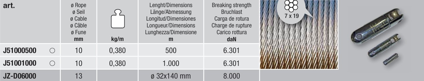 Seile aus verzinktem Stahldrahtgeflecht mit rundem Querschnitt sowie Drallfänger.