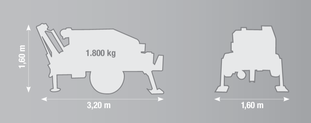 | VM 4000 DC | JVM4000DC | 4.500 daN | 0 – 60 m/min | 0 – 18 m/min | 0 – 36 m/min | 325 mm | 7 + 7 | 12/13/16/18 mm | 1.400 mm max. | Diesel | 35,2 (26) | 1800 kg | 3,20 m | 2,20 m | 1,60 m | 1,60 m |