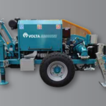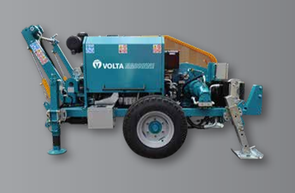 Kombinierte hydraulische Kabelziehwinde für die unterirdische Kabelverlegung sowie auch Freileitungsverlegung. Der hydraulische Antrieb erfolgt durch einen Dieselmotor. Die maximale Zugkraft wird durch zwei Mehrfachrillenspillköpfe erreicht. Montiert auf einem Fahrgestell mit starrer Fahrachse, mit verstellbaren Stützfüßen zur festen Verankerung der Winde. Serienmäßig wird die Maschine mit einem elektronischem Messgerät mit Anzeige der Zugkraft, Geschwindigkeit, verlegten Länge sowie Betriebsstundenzähler ausgerüstet. Die kombinierte Kabelziehwinde ist mit einer Bremse mit negativer Bremswirkung ausgestattet, die automatisch beim loslassen des Bedienhebels eingreift.