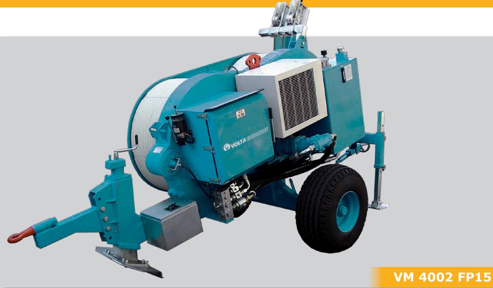 Hydraulische Bremsmaschine geeignet für die Freileitungsverlegung von Stahl- und Leiterseilen sowie OPGW. Die Bremskraft wird durch zwei große, aus hochfestem elastischem Nylonbelag bestehen den Rillenräder übertragen. Über die Rillenräder wird während der Verlegung der Hydraulikkreislauf aktiviert, dadurch kann die Bremskraft stufenlos eingestellt werden; was ein automatisches Anhalten und Wiederanlaufen ermöglicht. Montiert auf einem stabilen Stahlrohrrahmen mit Starrdeichsel, Feststellbremse, vordere und hintere Stützfüße sowie Ösen zur Verankerung. Analoge Geräteausstattung mit Messuhr, Meterzähler sowie Kontrollinstrumente für den Hydraulikkreislauf. Manuelle Negativbremse. Hydrauliköltank mit Wärmetauscher zum Kühlen des Hydrauliköles.