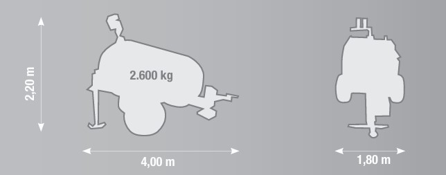 VM 4002 FP15 JVM4002FP15 4.500 daN 4.000 daN 150 daN 5,0 km/h 1500 mm 10 + 10 2 x 35 mm 50 mm 2.600 kg 4,00 m 3,30 m 1,80 m 2,20 m