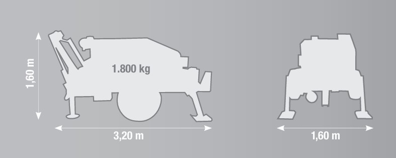 VM 5000 DC JVM5000DC 5.000 daN 0 – 60 m/min 0 – 14 m/min 0 – 28 m/min 325 mm 7 + 7 12/13/16/18 mm 1.400 mm max. Diesel 35,2 (26) 1800 kg 3,20 m 2,20 m 1,60 m 1,60 m