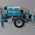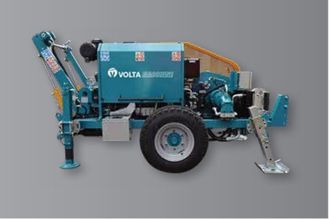 Kombinierte hydraulische Kabelziehwinde für die unterirdische Kabelverlegung sowie auch Freileitungsverlegung. Der hydraulische Antrieb erfolgt durch einen Dieselmotor. Die maximale Zugkraft wird durch zwei Mehrfachrillenspillköpfe erreicht. Montiert auf einem Fahrgestell mit starrer Fahrachse, mit verstellbaren Stützfüßen zur festen Verankerung der Winde. Serienmäßig wird die Maschine mit einem elektronischem Messgerät mit Anzeige der Zugkraft, Geschwindigkeit, verlegten Länge sowie Betriebsstundenzähler ausgerüstet. Die kombinierte Kabelziehwinde ist mit einer Bremse mit negativer Bremswirkung ausgestattet, die automatisch beim loslassen des Bedienhebels eingreift.