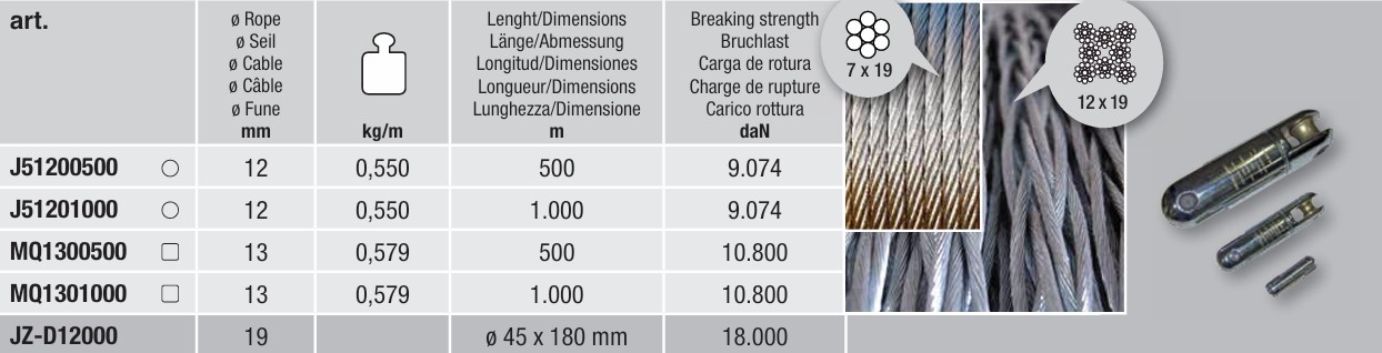 Seile aus verzinktem Stahl drahtgeflecht mit rundem Querschnitt; Flechtseile sowie Drallfänger.