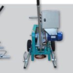 Mechanische Vorseilwinde, geeignet zum Einziehen von Windenseilen und gegebenenfalls auch von leichten Kabeln. Das Stahlseil der Vorseilwinde wird mittels eines Manschettenkolben mit Druckluft in das Leerrohr eingeblasen. Das Seil läuft in dieser Phase frei von der Seiltrommel ab und kann jederzeit durch den Kipphebel abgebremst werden. An der Rohröffnung wird das Seil mit dem Windenseil verbunden und anschließend eingezogen.