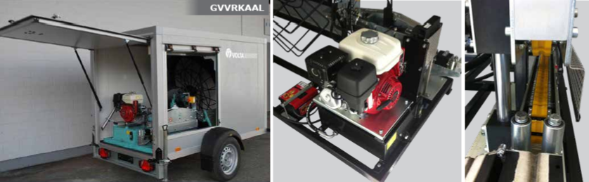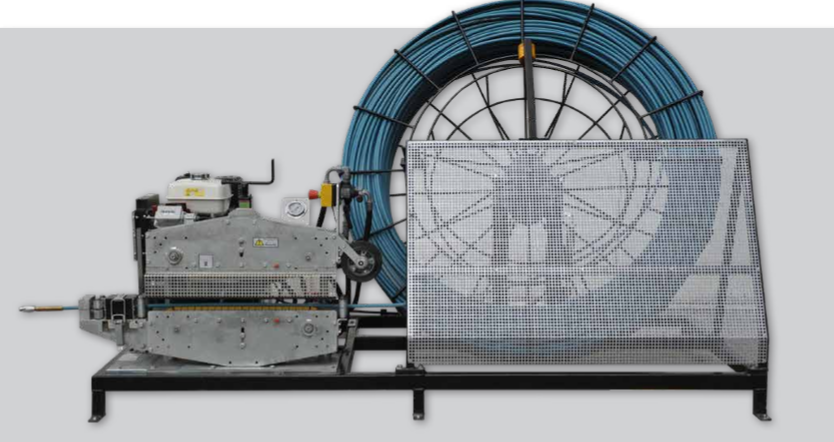 Das mobile Röhrenschlangen-Vorschubgerät VOLTA- RING ist ein stabiles und kompakt gebautes Schub- gerät für Röhrenschlangen bis Ø 15 mm. Der Antrieb erfolgt hydraulisch über einen Verbrennungsmotor. Das Gerät mit Grundrahmen, aufgebautem Hydraulikaggregat, drehbarer gebremster Haspel und Schubeinheit kann so- wohl in einem Anhänger eingebaut oder als eigenständiges Standgerät eingesetzt werden. Schubkraft: ca. 300 daN. Als Antriebmotor wird wahlweise ein Benzinmotor (Honda GX270 ) oder Dieselmotor (Lombardini 15LD440) eingesetzt.