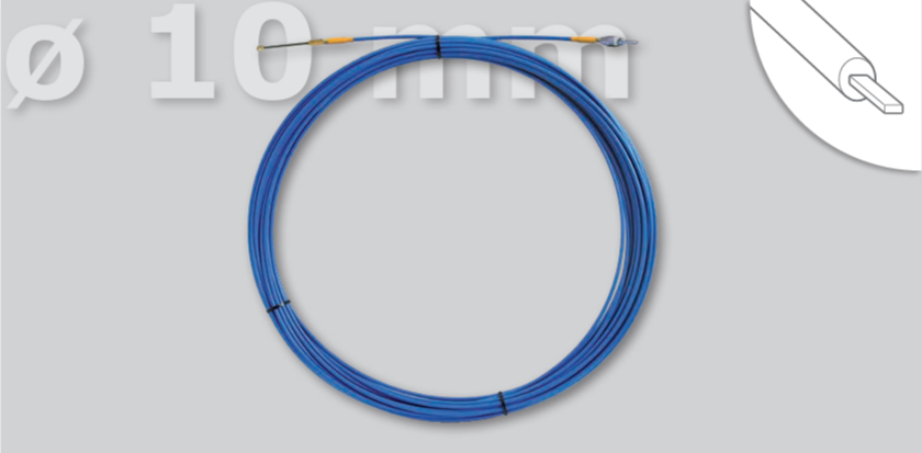 Flachstahl Band VOLTASTEEL FLAT COVERED ø 10 mm, mit PP-Ummantelung, mit austauschbaren Endstücken; Federführungskopf mit Öse und Zugkopf mit Öse.